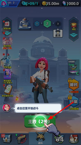 1、點擊主線可開啟戰斗,界面還能看到等級金幣等信息,按提示操作就能進入戰斗環節。