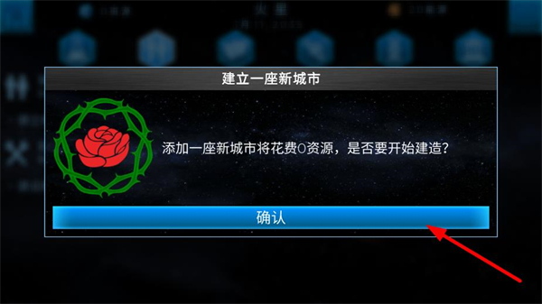 2、建立新城市,添加新城市花費0資源,點擊確認開始建造,為火星殖民建立基礎。