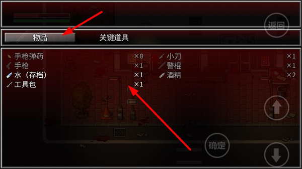 4、打開背包界面查看物品,可使用手槍彈藥等道具補給,裝備小刀警棍等武器,提升戰斗能力,助力后續的感染者清剿。