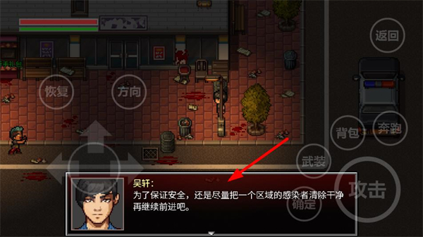 1、查看角色對話,了解需清理區域感染者的提示,操控角色移動,利用方向按鈕調整位置,準備開展清剿行動。