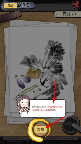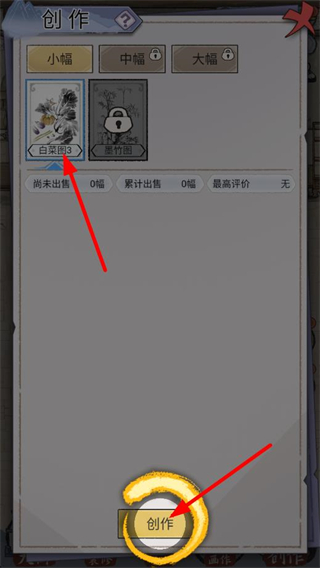 2、在創作界面選擇小幅畫作如白菜圖3,點擊創作按鈕,開始繪制水墨作品,積累畫作數量。