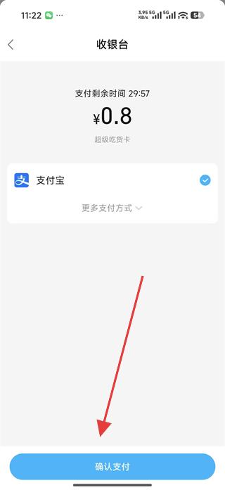 4、在收銀臺頁面確認支付金額和支付方式,點擊確認支付即可完成超級吃貨卡的購買,享受相應的優惠權益。