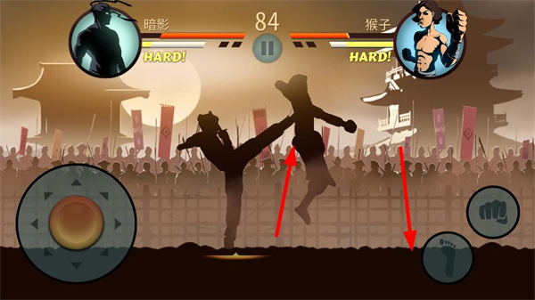 3、在錦標賽對戰過程,操控暗影角色使用拳腳技能攻擊對手猴子,消耗其血量,爭取獲得優勢,推進比賽進度。