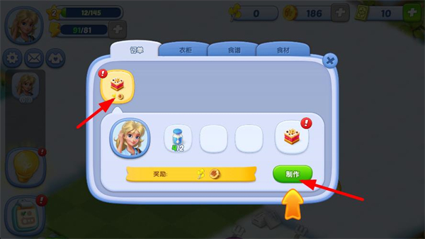 1、能看到角色頭像和對應的物品,點擊制作按鈕,可完成對應物品的制作,推進游戲進程。