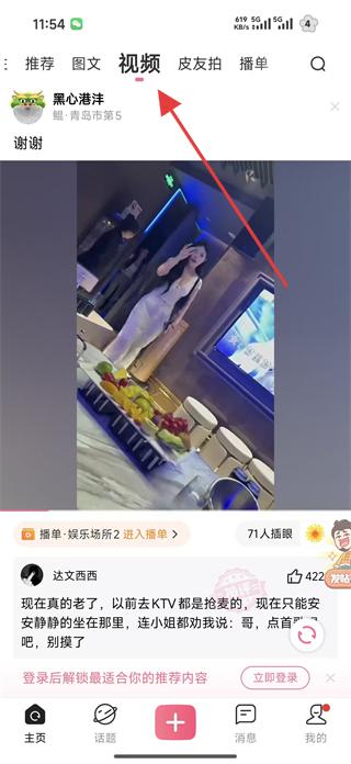 3、點擊視頻標簽,進入視頻頁面,展示著各類視頻內容,像KTV場景相關的視頻,還有用戶對視頻內容的評論,可觀看視頻并查看評論。
