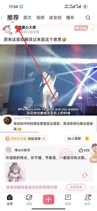 1、進入主頁可看到推薦、圖文、視頻、皮友拍、播單等分類標簽,推薦頁面展示著各類推薦內容,比如帶有舞臺表演畫面的帖子。