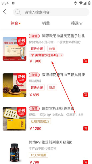 2、在保健食品商品列表頁面,瀏覽各類商品,如溯源款芝堂靈芝孢子油禮、雙陽梅花鹿茸血三鞭丸健康酒等,點擊進入商品詳情頁面。