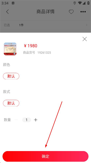 4、選擇好商品規格后點擊確定,將商品加入購物車,完成商品的選擇和加入購物車。