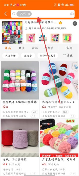 4、在分類頁面選擇毛線分類,進入毛線商品列表,可看到不同種類的毛線,如寶寶線手工編織套裝棉、熱棉毛線團等,點擊商品可查看詳細信息并購買。