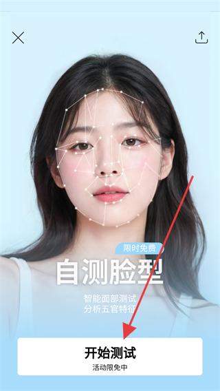 1、打開甜鹽相機app,點擊開始測試按鈕,自測自己的臉型。