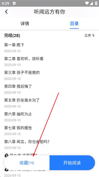 2、進入小說目錄頁面可查看已完結章節列表,點擊搜藏按鈕,可以方便以后的閱讀。