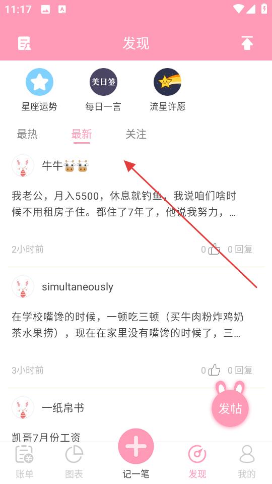 1、進入發現頁面,切換至最新板塊,瀏覽用戶發布動態,如牛牛分享家庭租房話題、講述校園美食等內容,了解不同用戶生活日常。
