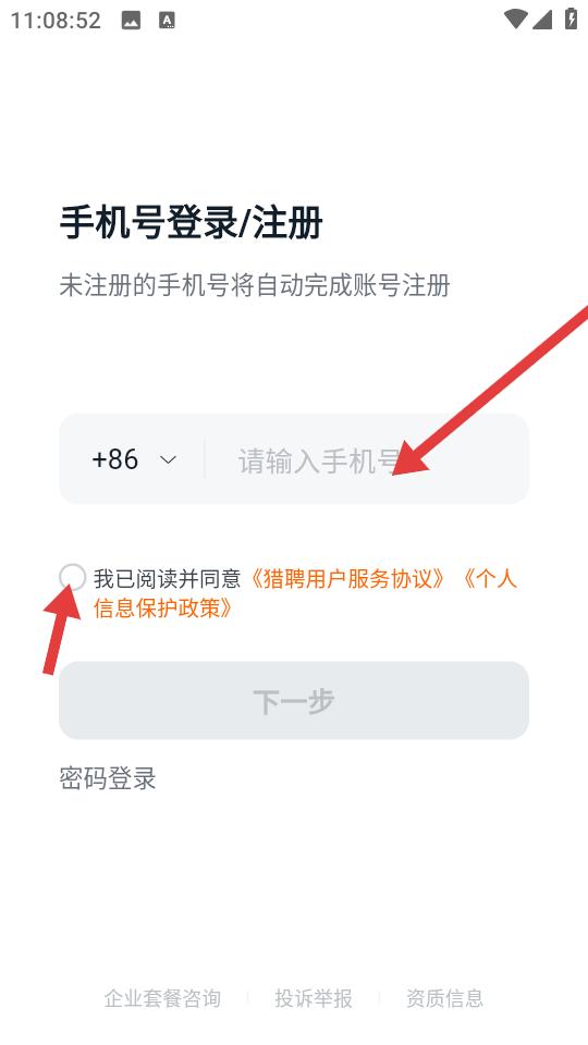 1、進入手機號登錄注冊頁面在輸入框填寫手機號碼,勾選我已閱讀并同意相關協議,點擊下一步,未注冊的手機號將自動完成賬號注冊流程。