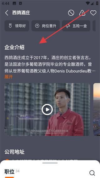 2、在發現頁面可看到各類企業信息,選擇感興趣的企業,比如西鴿酒莊,點擊該企業,進入企業詳情頁面。