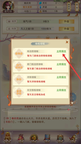 4、可前往練功房、家族門派等修煉增幅地點,點擊立即前往,提升修煉速度,助力境界提升。