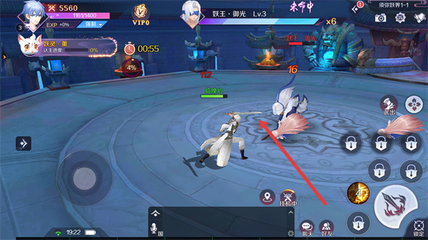 4、可操控角色與妖王等敵人對戰,使用技能攻擊敵人,注意敵人血量和自身狀態,贏得戰斗。