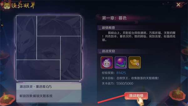 3、可挑戰劇情關卡,如須彌妖界的第一章暮色,查看劇情概要和挑戰獎勵,點擊挑戰劇情參與。
