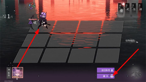 3、選擇角色布置陣型,調整好后點擊確認按鈕完成編隊,準備進入戰斗環節,應對后續的怪物挑戰。