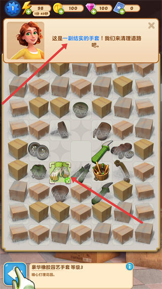 3、會出現一副結實的手套,玩家可利用它清理道路,同時界面會顯示相關道具信息。