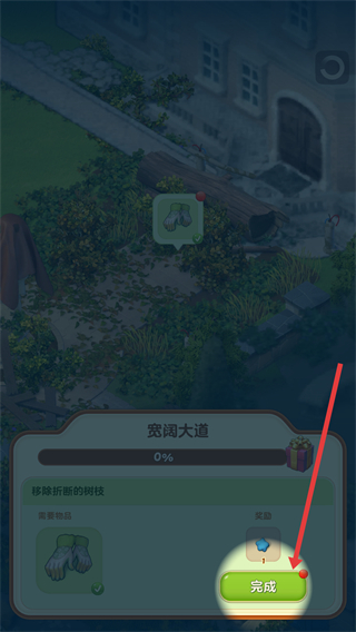 4、在寬闊大道場景,玩家可完成移除折斷樹枝的任務,完成后可獲得升級星星獎勵。