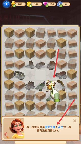 2、在界面時會出現標有點擊的園藝工具,玩家點擊它,可查看是否有用得上的工具。