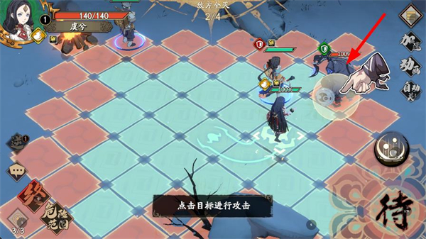4、移動角色至合適位置后,點擊敵方目標,操控角色對其發起攻擊,借助攻擊來消耗敵方血量,推進關卡進度。