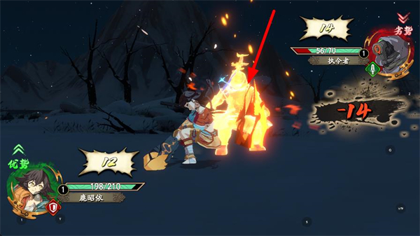 2、操控鹿昭依釋放技能,對執令者造成傷害,觀察傷害數值變化,持續攻擊消耗敵方血量以推進戰斗。