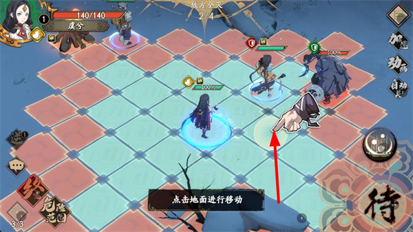 3、根據提示點擊地面位置,操控角色進行移動,調整其在戰場的站位以便后續操作。