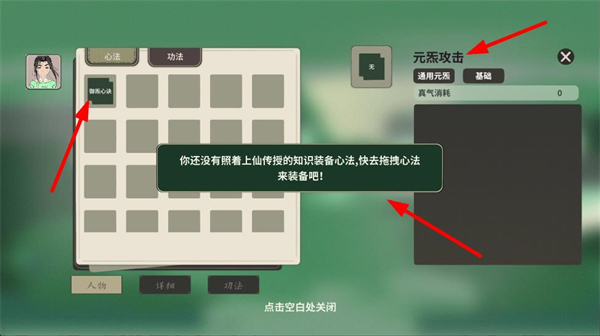 4、需裝備心法如御熙心訣,拖拽心法到對應欄位,裝備后可使用元炁攻擊等技能,提升修仙戰斗能力。