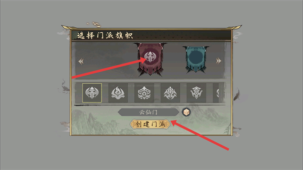 3、需選擇門派旗幟,確定門派名稱如云仙門,選擇后點擊創建門派,正式建立自己的門派。