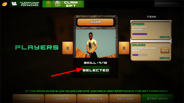 1、在展示玩家卡片的界面,找到SELECTED按鈕選定對應玩家,完成角色選擇后準備進入游戲。