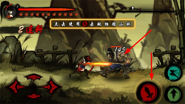 3、點擊使用攻擊技能擊敗攔路山賊,通過戰斗獲取經驗和資源,提升角色戰力,解鎖新的技能和裝備,增強戰斗能力。