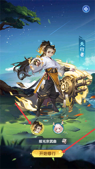 1、可選擇天行者等角色,屬于搖光宗武曲流派,點擊開始修行可開啟游戲征程。