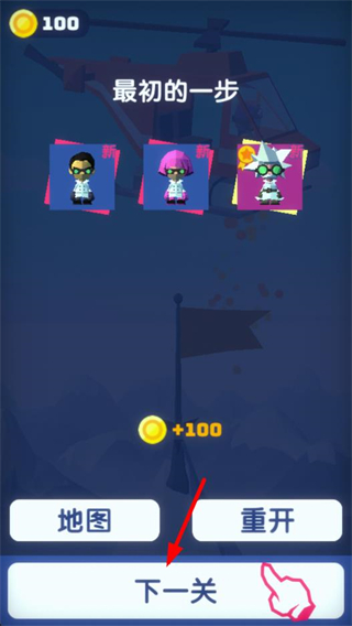 4、完成當前關卡的救援后,會獲得金幣獎勵,點擊下一關按鈕,開啟新的救援關卡繼續任務。