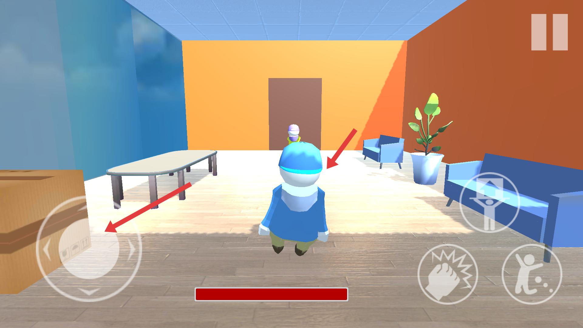 2、進入游戲場景,通過左側虛擬搖桿控制角色移動,在房間內探索,留意周圍環境和其他角色,為后續互動做準備。