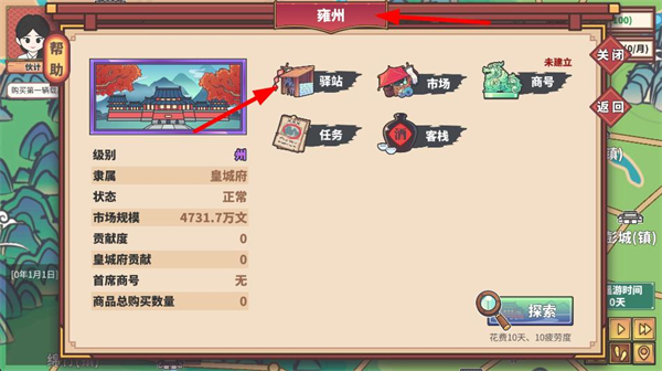 2、進入雍州等城市,在城市界面里找到驛站,通過驛站可進行載具購買等操作,同時還能查看城市的市場規模等信息。