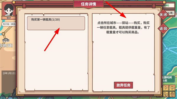 1、有購買第一輛載具的任務,需前往所在城市驛站購買任意載具,載具提供載重量,有了載重量才能購買商品。