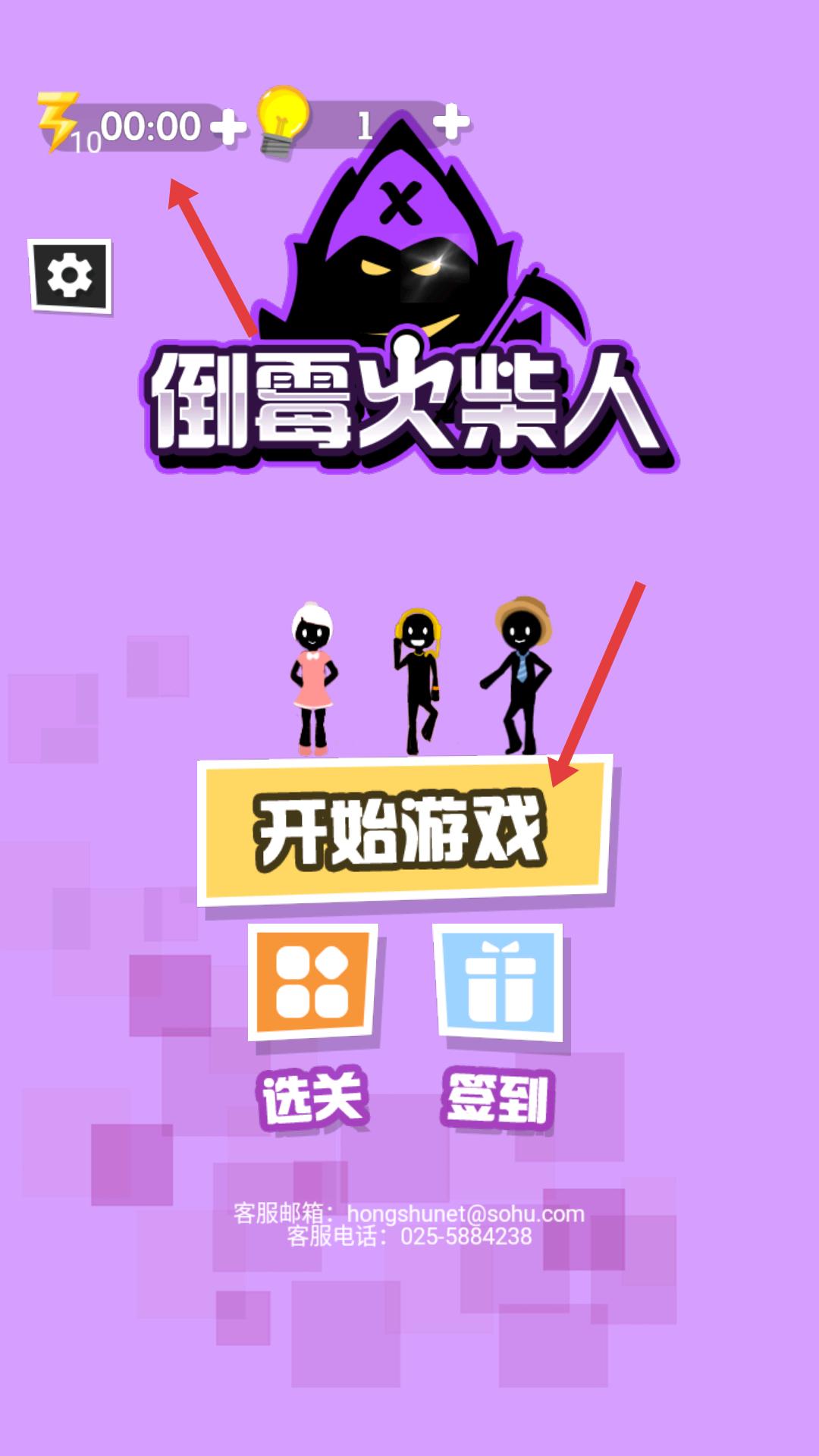 1、游戲初始界面,顯示游戲名稱,點擊開始游戲,即可進入關卡,開啟整蠱火柴人的挑戰。