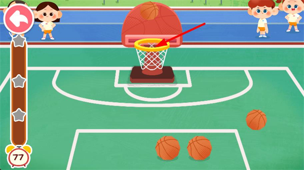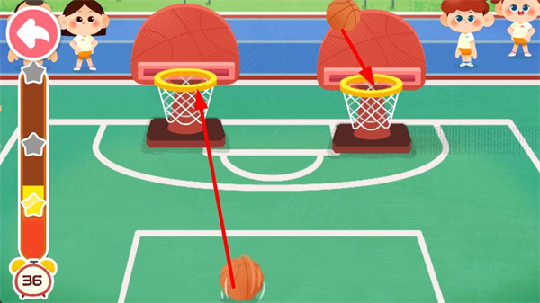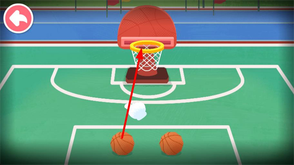 1、操控籃球向籃筐方向投射,嘗試將籃球投入籃筐,開啟籃球投籃的挑戰環節,積累得分。