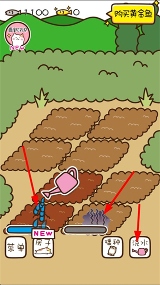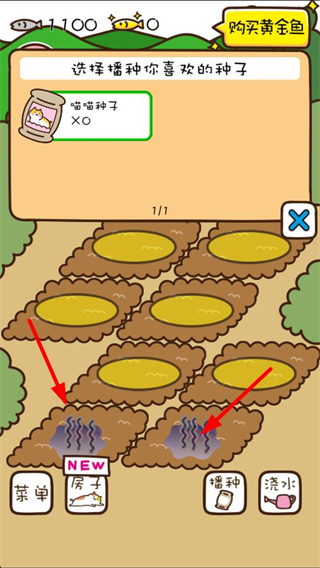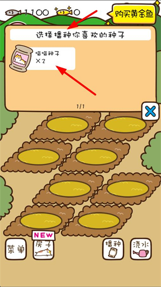 1、選擇喜歡的種子,比如喵喵種子,按提示選擇該種子,即可準備在農田里進行播種操作,開啟種植流程。