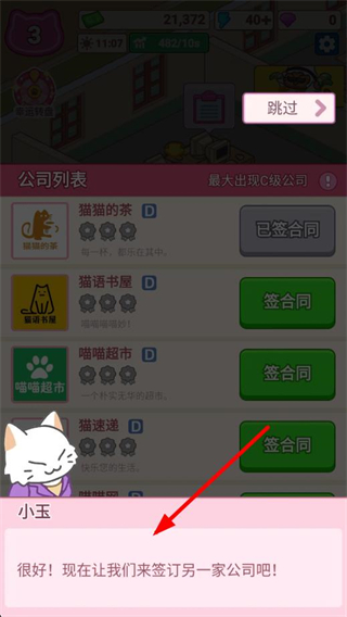 3、小玉會引導簽訂另一家公司,在公司列表里選擇新的合作對象,拓展公司業務范圍,提升經營效益。