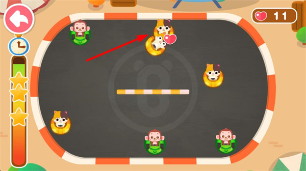 4、隨著游戲推進,場內會出現更多小猴和小動物角色,持續操控角色互動碰撞,收集愛心,積累分數以獲取更好的游戲評價。
