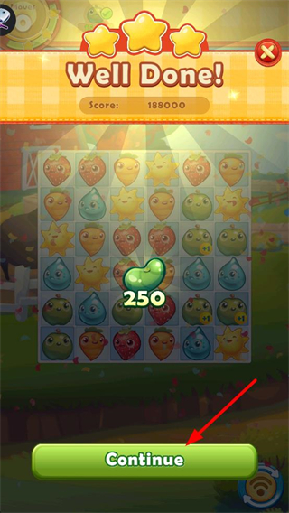 3、完成關卡目標后會出現WellDone界面,顯示當前得分,下方有Continue按鈕,點擊該按鈕可進入下一個關卡,繼續游戲進程。
