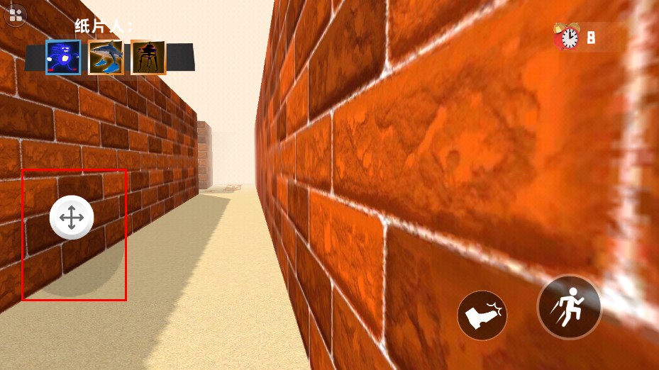 2、在紅磚通道等場景,操控左側的方向按鈕,可控制角色在通道內移動,探索不同的區域,尋找逃生路徑。