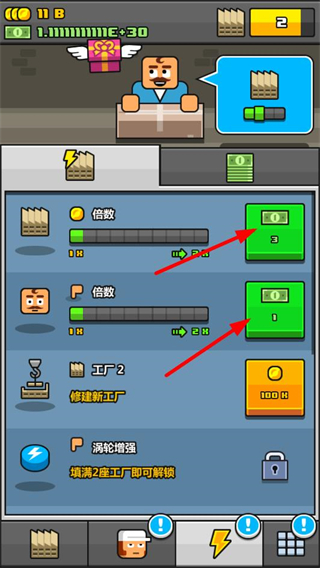 3、多種策略提升收益:可以通過多種方式提升收益,如讓員工加班加點,使用道具加速工作,建立新工廠等,策略豐富多樣。