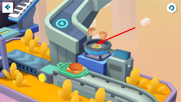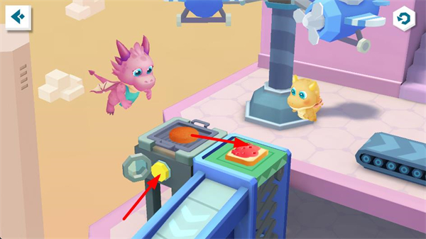 4、把烹飪好的食材放置到指定操作臺上,借助角色協助完成食材的后續處理,為美食的最終成型做準備,推進制作收尾。