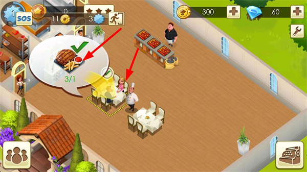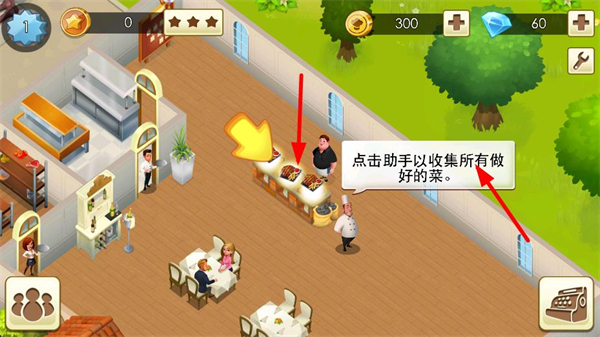 3、將做好的菜品送到對應餐桌,完成給顧客上菜的服務,積累餐廳的經營進度與收益。