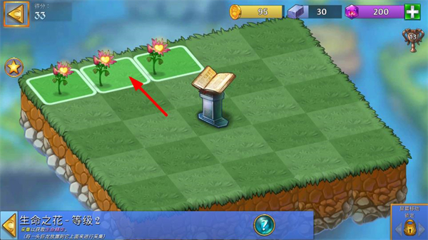2、把生命之花幼芽移到指定區域后,幼芽升級為生命之花等級2,此時得分會對應提升,繼續推進合成操作。