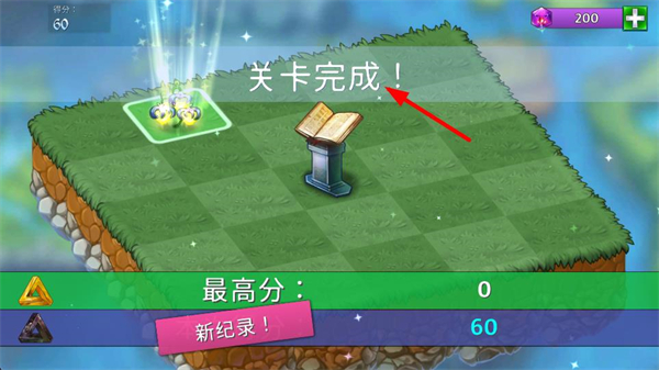 3、完成合成后出現關卡完成提示,同時顯示新紀錄得分,界面呈現獎勵相關效果,可結束當前關卡流程。