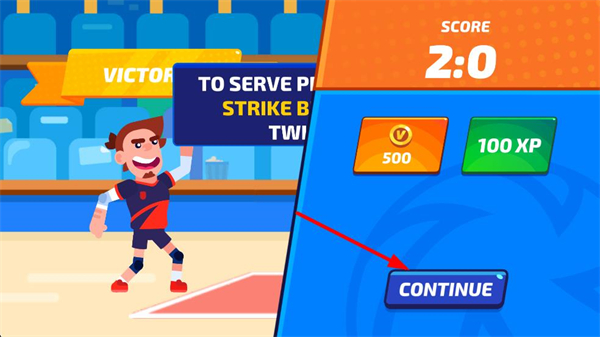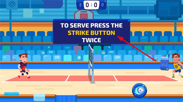 2、球員移動到球的區域后,再次點擊擊球按鈕,讓球向對方場地傳遞,以此開啟排球對戰的攻防交互環節。